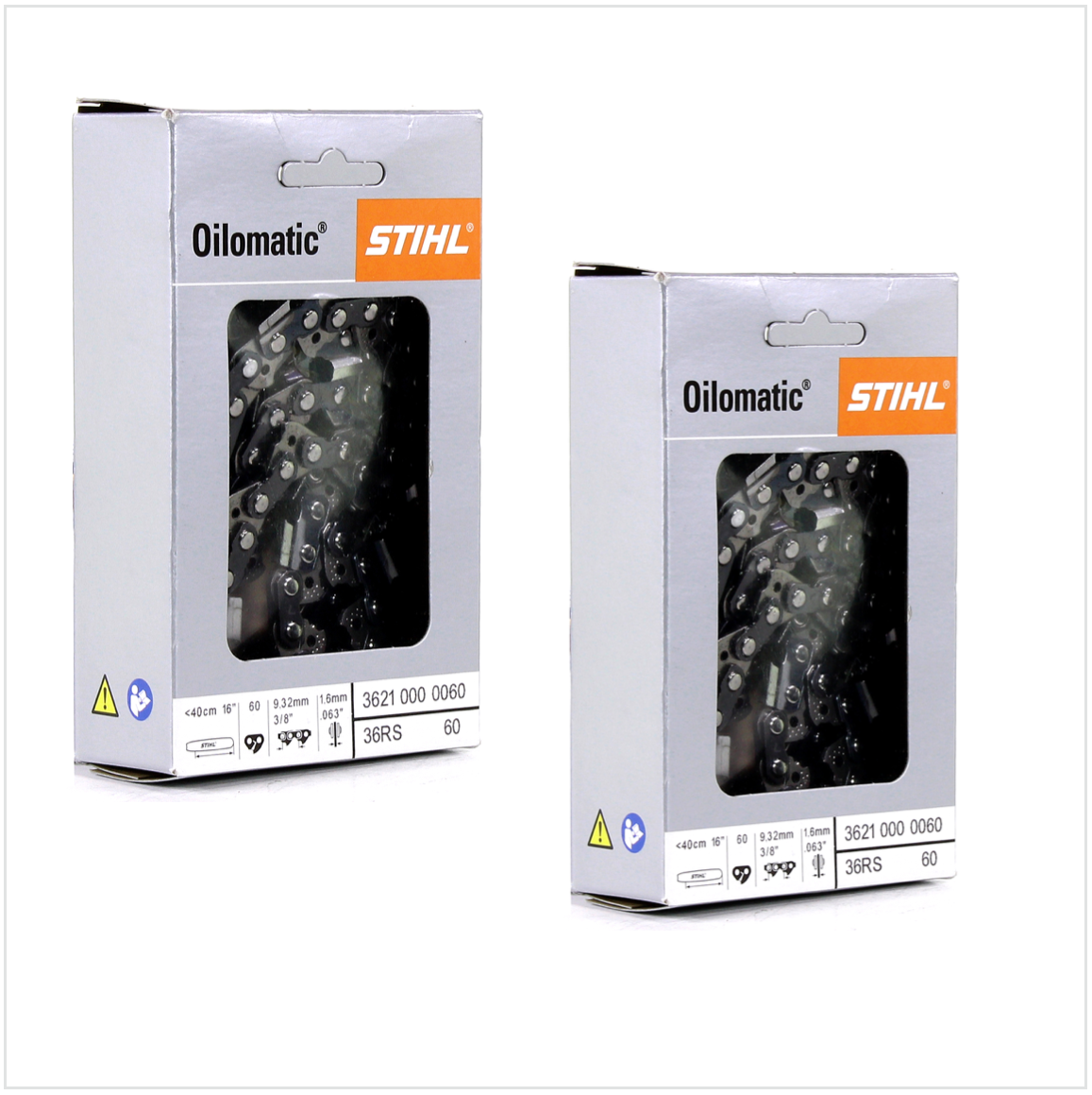 2x STIHL Hochleistungs Sägekette Rapid Super (RS) Vollmeißel 3/8" 1,6mm 40cm ( 3621 000 0060 )