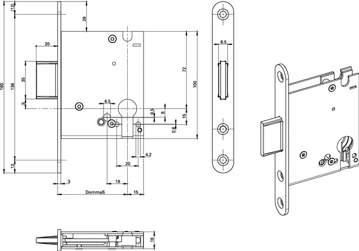 BKS mortise deadbolt lock 1308 PZ20/55 mm ( 3000250786 )
