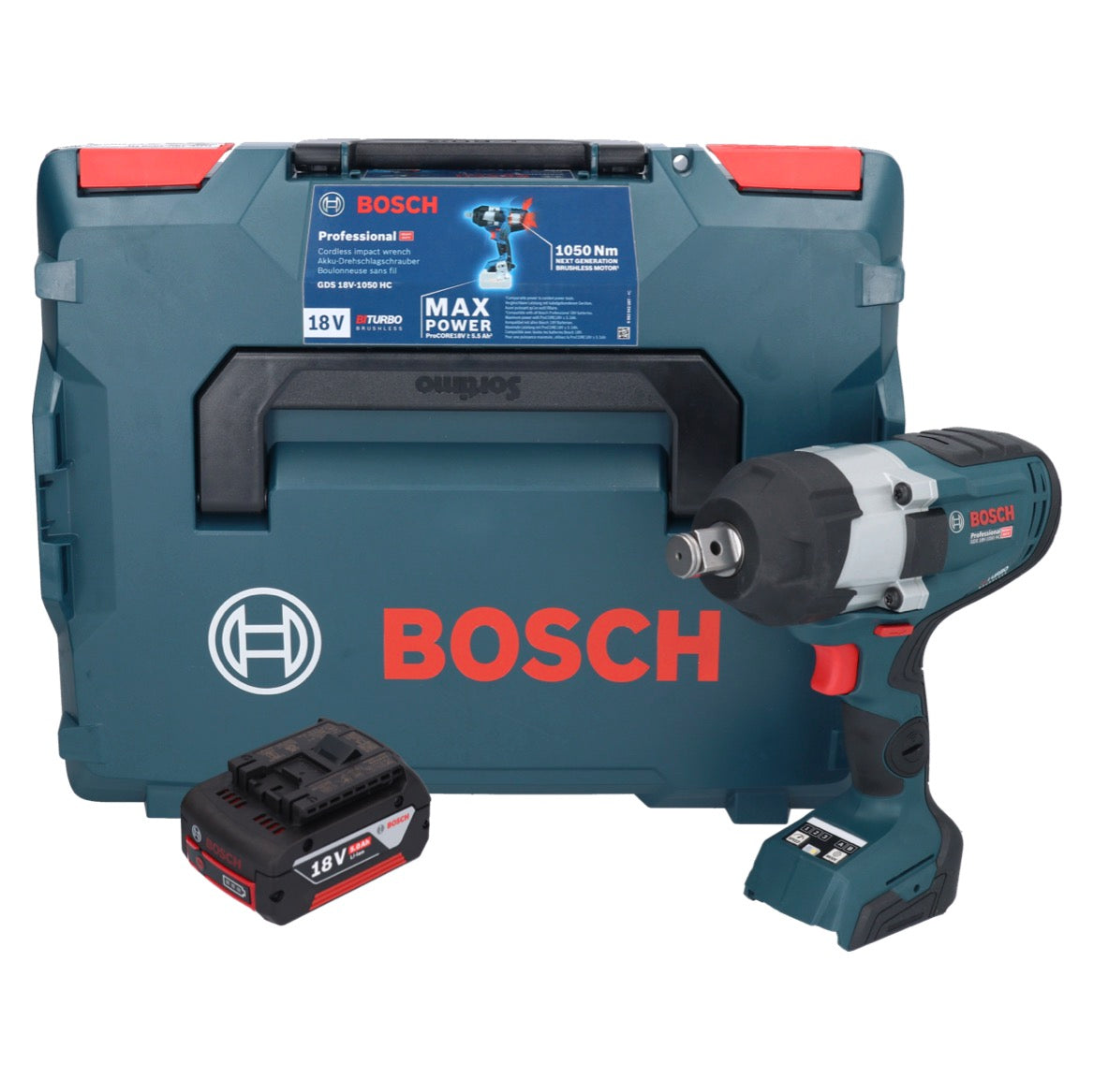Bosch GDS 18V-1050 HC Akku Drehschlagschrauber 18 V 1050 Nm BITURBO Brushless + 1x Akku 5,0 Ah + L-Boxx - ohne Ladegerät