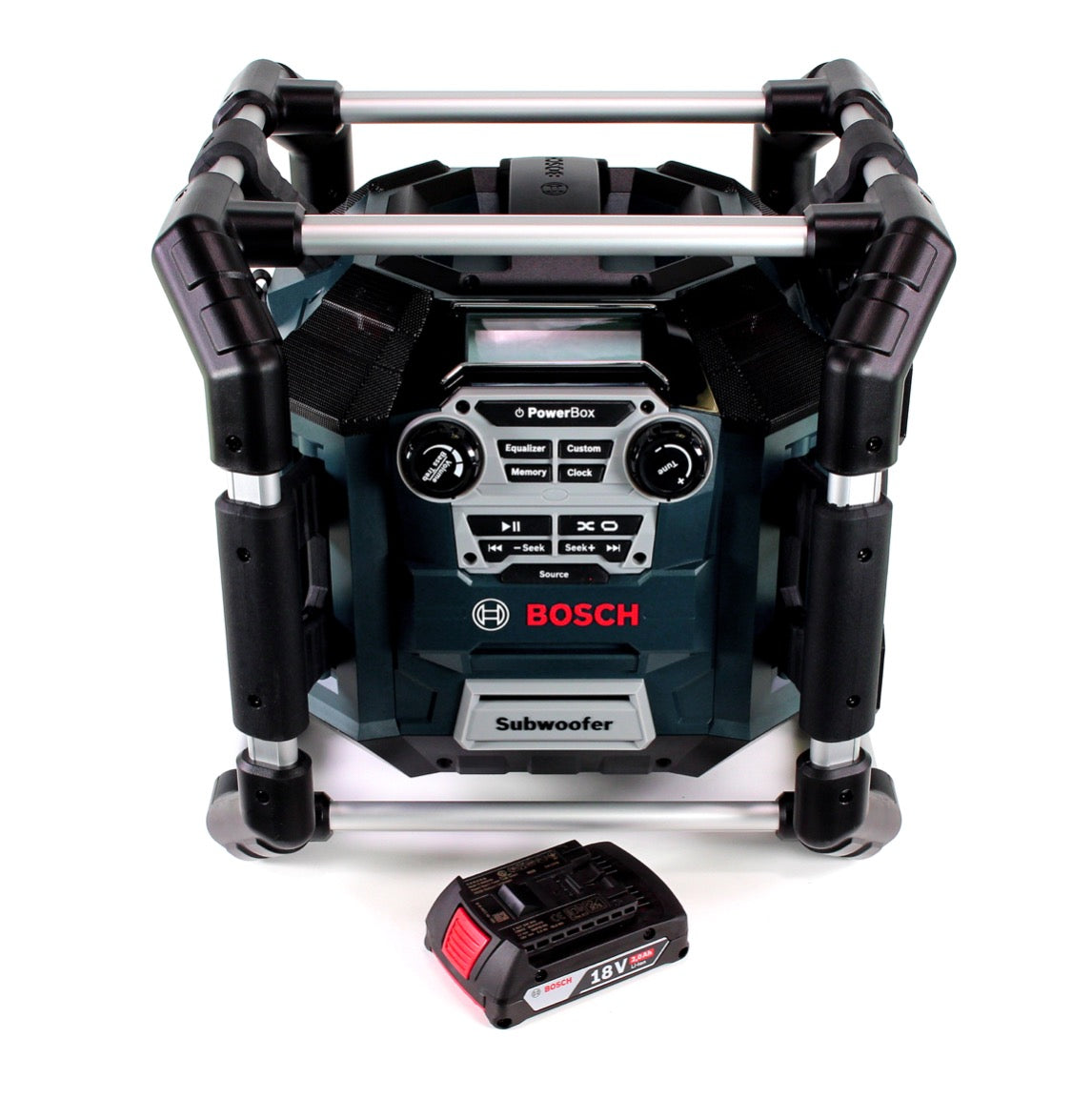 Der Bosch GML 20 Baustellenradio 14,4 - 18V ist durch den Rundum-Schutz extrem robust. Dank dem Feder gelagerten Aluminiumrahmen ist er auch nach einem 3 m Fall voll funktionsfähig. Staub- und Spritzwasser geschützt ist der Baustellenradio ebenfalls. Durch seine starken 20 Watt und seine integrierten Subwoofer mit 4 Boxen, ist der Bosch GML 20 unschlagbar und hat einen Rundum-Sound für Radio und MP3-Wiedergabe. Er beinhaltet variable Anschlussmöglichkeiten ( USB, SD, 2x Aux-In, Aux-Out ) für Musikwiedergabe sowie 12 V DC Strombuchse. Dank der Li-Ionen-Akku-Technologie, ist keine Selbstentladung, kein Memory Effekt und keine höhere Energiedichte möglich. Der Bosch GBA 18V 2 Ah zeichnet sich durch sein sehr geringes Gewicht und seine dennoch hohe Leistungsfähigkeit aus. Diese Akku Generation von Bosch verfügt über die Cool Pack Technologie, für eine bis zu 100 % längere Lebensdauer, mit einer solch stabilen Bauweise, dass die Akkus selbst nach einen Fall aus 3 m Höhe auf Beton voll funktionsfähig bleiben. Durch das Bosch flexible Power System ist der Akku zudem passend für alle Geräte einer Voltklasse.