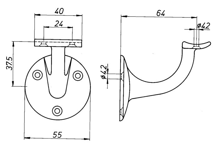 curved support - wall distance 64 mm - wall plate 53 Ø - with countersunk screw holes
