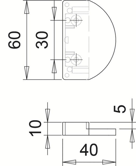60 mm x 40 mm - concealed screws - drilling distance 30 mm
