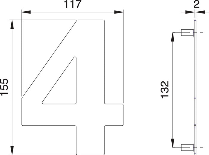 - 1x EDI house number digit 4 stainless steel matt