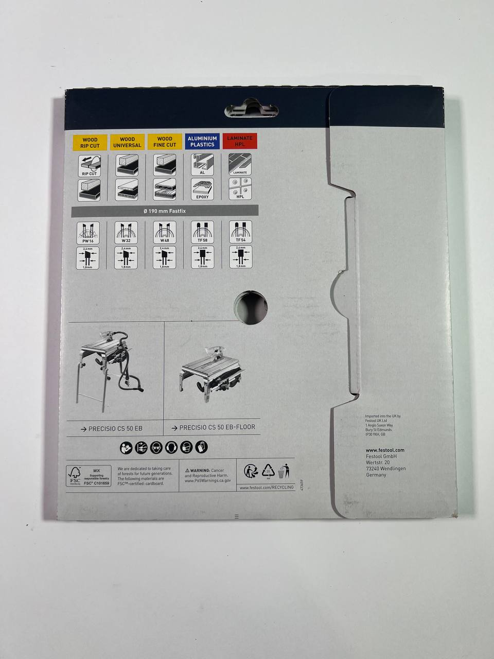 - 1x Festool circular saw blade HW 190 x 2.4 mm Fast Fix W48 ( 492050 )