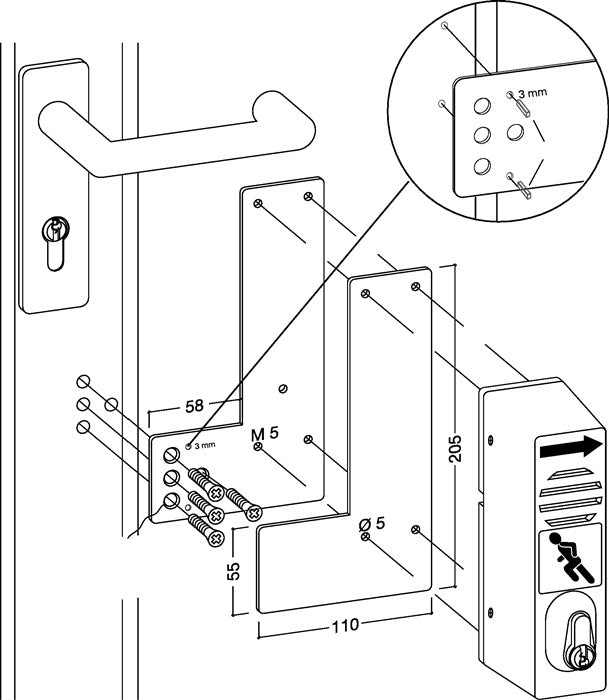 GFS mounting plate 901 - / 991 470 Mounting on glass doors ( 3000250545 )