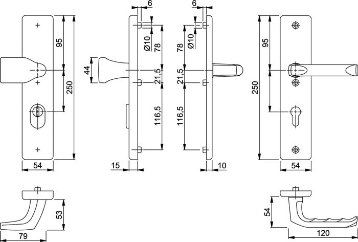 for end doors - burglar-resistant to DIN 18257 - outer plate edge height 12 mm - steel substructure in outer plate and Zamak substructure in inner plate - hardened steel cylinder cover for protruding cylinder length 10-18 mm - FDW profile pin connection - visible screw connection - including fixing material - PZ perforation - DIN left / right - resistance class ES 1