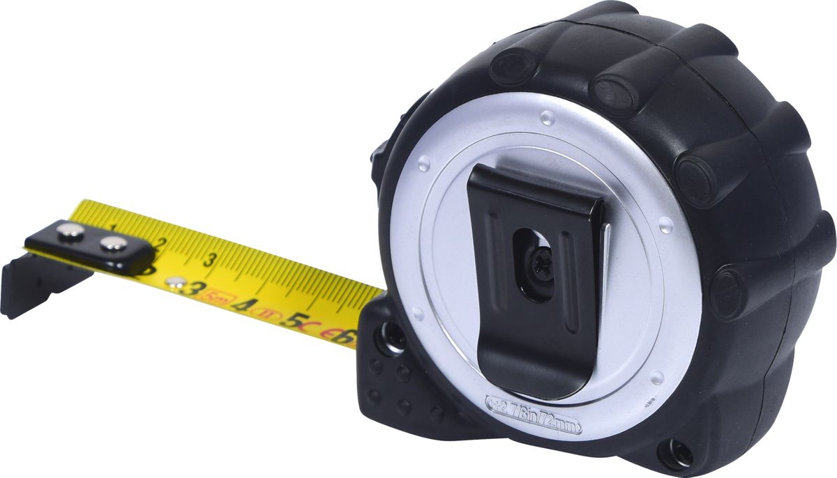 Bandmaß mit Feststeller, 5m · Bandmaß mit Feststeller, Gürtelclip und magnetischem Anschlag