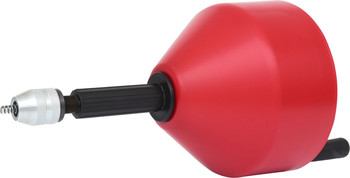 • Rohrreinigungsgerät mit Trichterbohrer-Spirale für den Einsatz in sehr engen Rohrbögen und Kniestücken bis max. Ø 75 mm ohne Ausbau von Spülbeckensieben oder Siphons