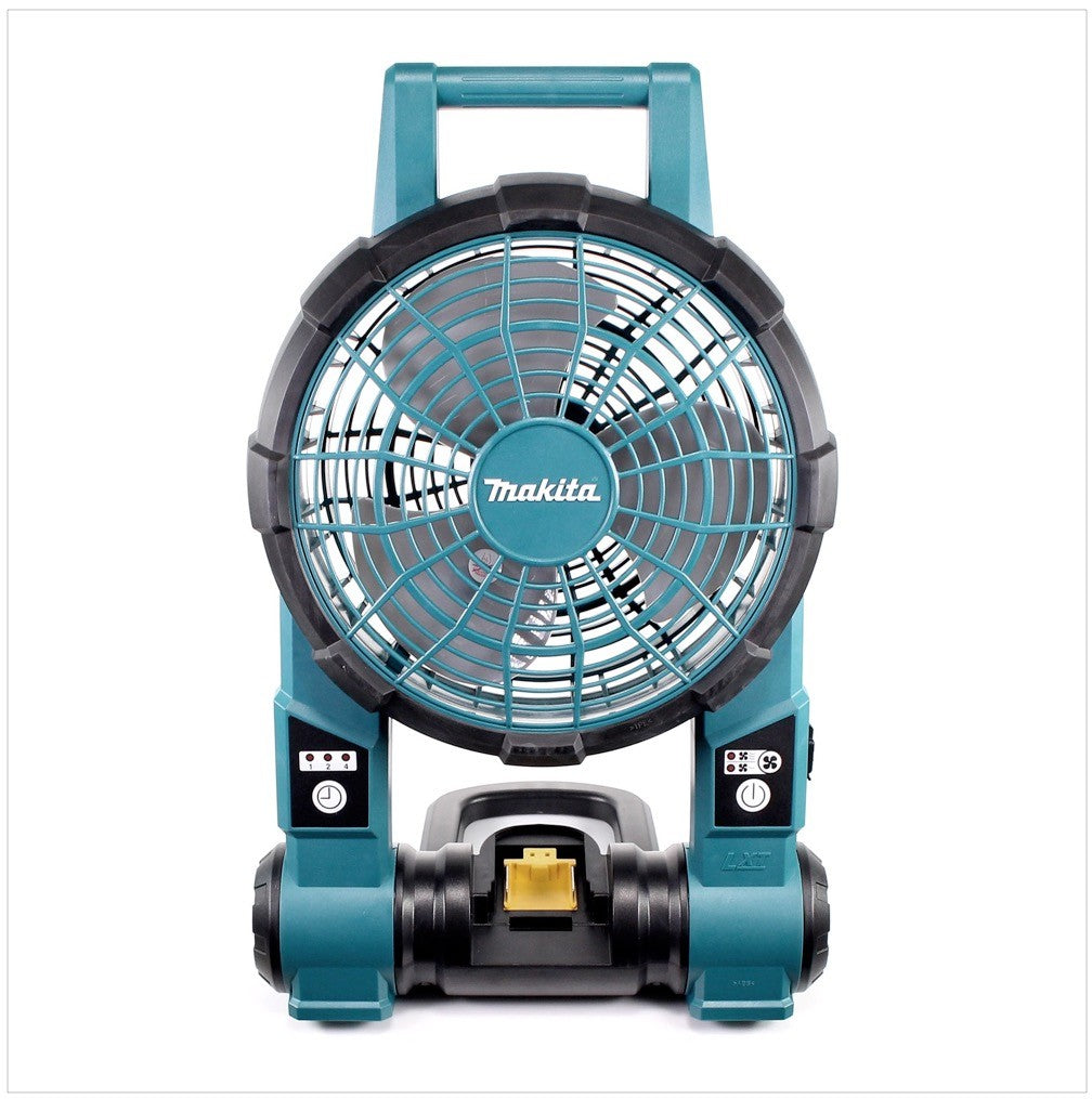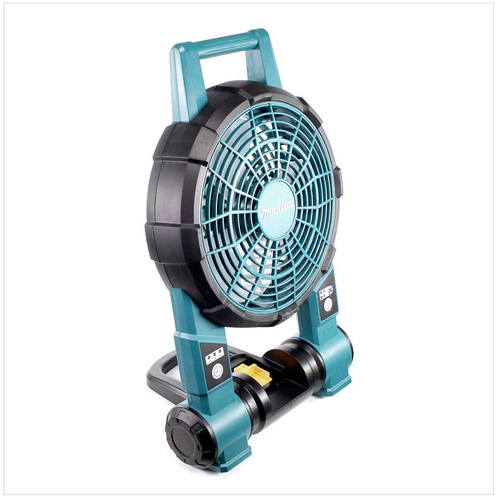 Der Makita BCF 201 Akku-Lüfter kann mit allen gängigen 14,4V und 18V Akkus aus dem Hause Makita betrieben werden. Zusätzlich befindet sich im Lieferumfang ein 15V Netzteil, womit der Lüfter an das Stromnetz angeschlossen werden kann. Der Lüfter erreicht eine maximale Windgeschwindigkeit von 120 m/min und ist mit einem Timer und einer Abschaltautomatik ausgestattet. Außerdem lässt er sich in zwei Gebläsestufen variieren und um bis zu 45° neigen.