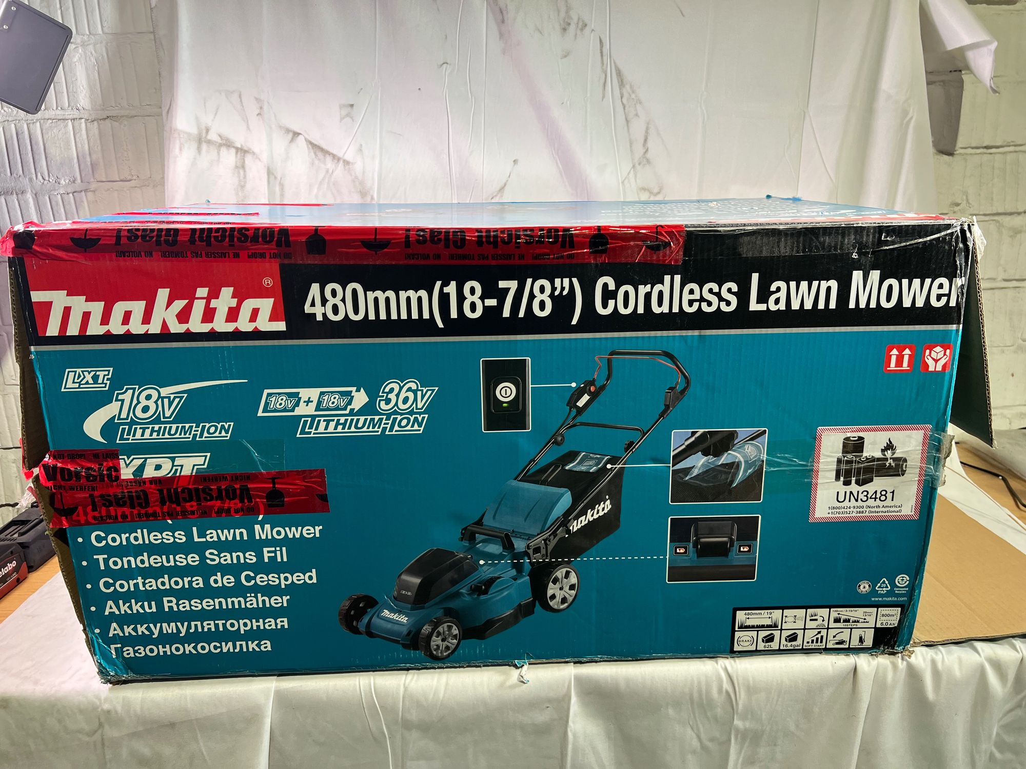 Makita DLM 480 Z Akku Rasenmäher 36 V ( 2x 18 V ) 48 cm 62 l Solo - ohne Akku, ohne Ladegerät - Reparaturgerät