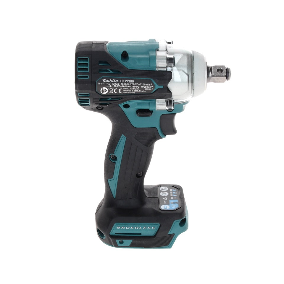 The Makita DTW 300 cordless impact wrench has a powerful brushless motor. One of the highlights of the impact wrench is the tightening torque of 330 Nm. Thanks to the four modes for different impact force levels, it is easy to work with different materials. The impact wrench also has three screwdriving modes, so loosening screws without damaging them unnecessarily is no longer a problem. The LED work light with afterglow function provides good lighting, making it easier to work in poor visibility conditions. The snap ring guarantees a quick and secure pick-up of tools. The Makita DTW 300 also has deep discharge protection. This switches the machine off automatically when the battery is almost empty. Thanks to the belt clip, which can be mounted on the right or left, the impact wrench can be quickly and securely attached to the belt. The Makita DTW 300 is perfect for jobs that require a high tightening torque, and thanks to its compatibility with Makita's 18 volt batteries, a wide range of accessories is available. Makita is a leading manufacturer of power tools that has won the trust of customers for years and is known worldwide for the high level of quality in the processing of tools.