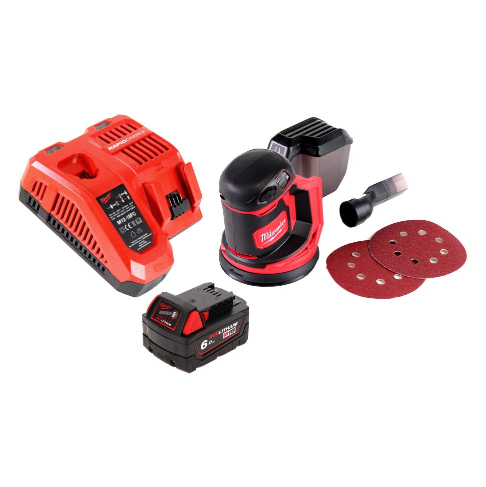 Milwaukee M18 BOS125-601 FC Random Orbital Sander 125mm 18V + 1x Battery 6.0 Ah + Charger