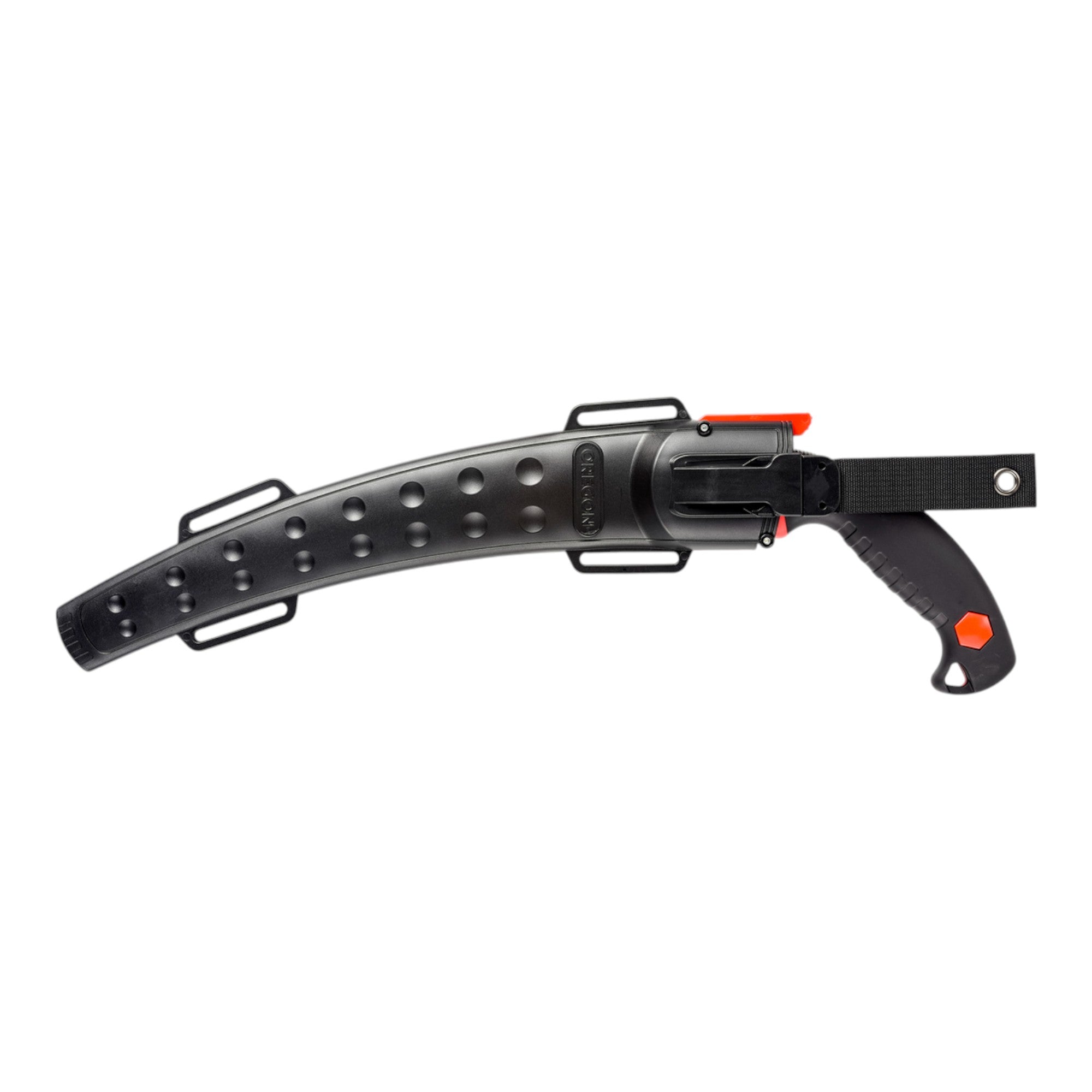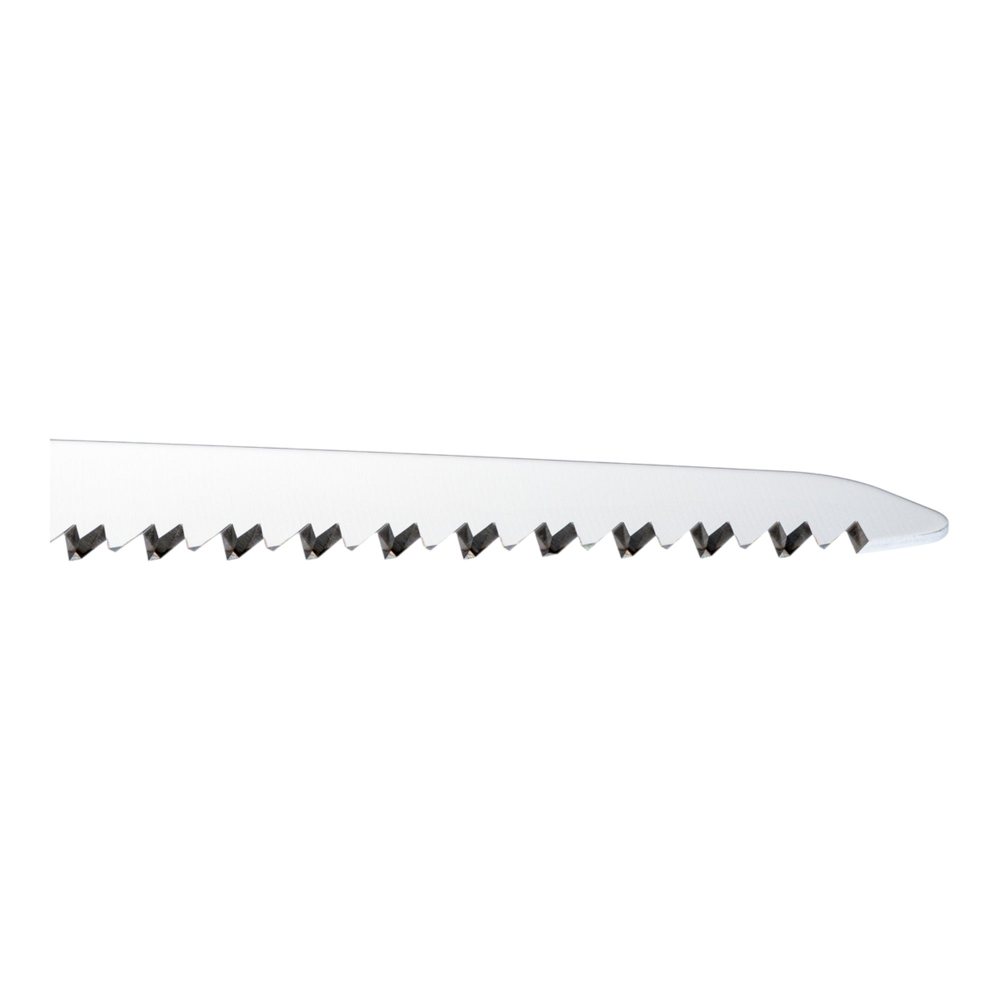 The Oregon pruning hand saw 33 cm (13") is a reliable tool for precise and clean cuts in garden and tree care. Its high-quality, curved blade made of high-carbon Japanese steel is equipped with three-edged, impulse-hardened teeth that ensure particularly smooth and effortless cuts. With 6.5 teeth per inch, the saw impresses with its sharpness and durability - ideal for regular use. The replaceable, chrome-plated blade increases the service life of the tool and enables the best cutting performance at all times. The ergonomic handle design combined with a hard-wearing polypropylene handle ensures maximum comfort and a secure grip, even when working for long periods. The practical sheath with snap-in mechanism ensures safe storage and can be attached flexibly with a belt loop or webbing. This makes the handsaw not only efficient, but also safe and comfortable to use. With the Oregon 600136 pruning hand saw, you are ideally equipped for demanding pruning work in the garden or for professional tree care.