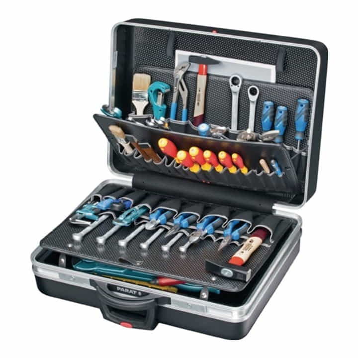 Rollable - case shells made of impact-resistant X-ABS plastic black - tool boards made of Con-Pearl (high resistance to moisture, high scratch resistance) - double aluminium frame - tilt cylinder locks - ratchet hinges - floor gliders - lockable lid holder - 4-way telescopic pull-out - large rubber-mounted castors - load capacity up to 30 kg - features: - 1 tool board with 31 compartments - 1 tool board with 12 compartments - 1 cover plate with 19 compartments and 1 clamp compartment for documents - 1 base tray with 1 divisible compartment 540 x 88 (63) x 223 mm - 1 fixed compartment 540 x 57 x 140 mm - 1 retaining loop for spirit level - 1 document compartment in the lid