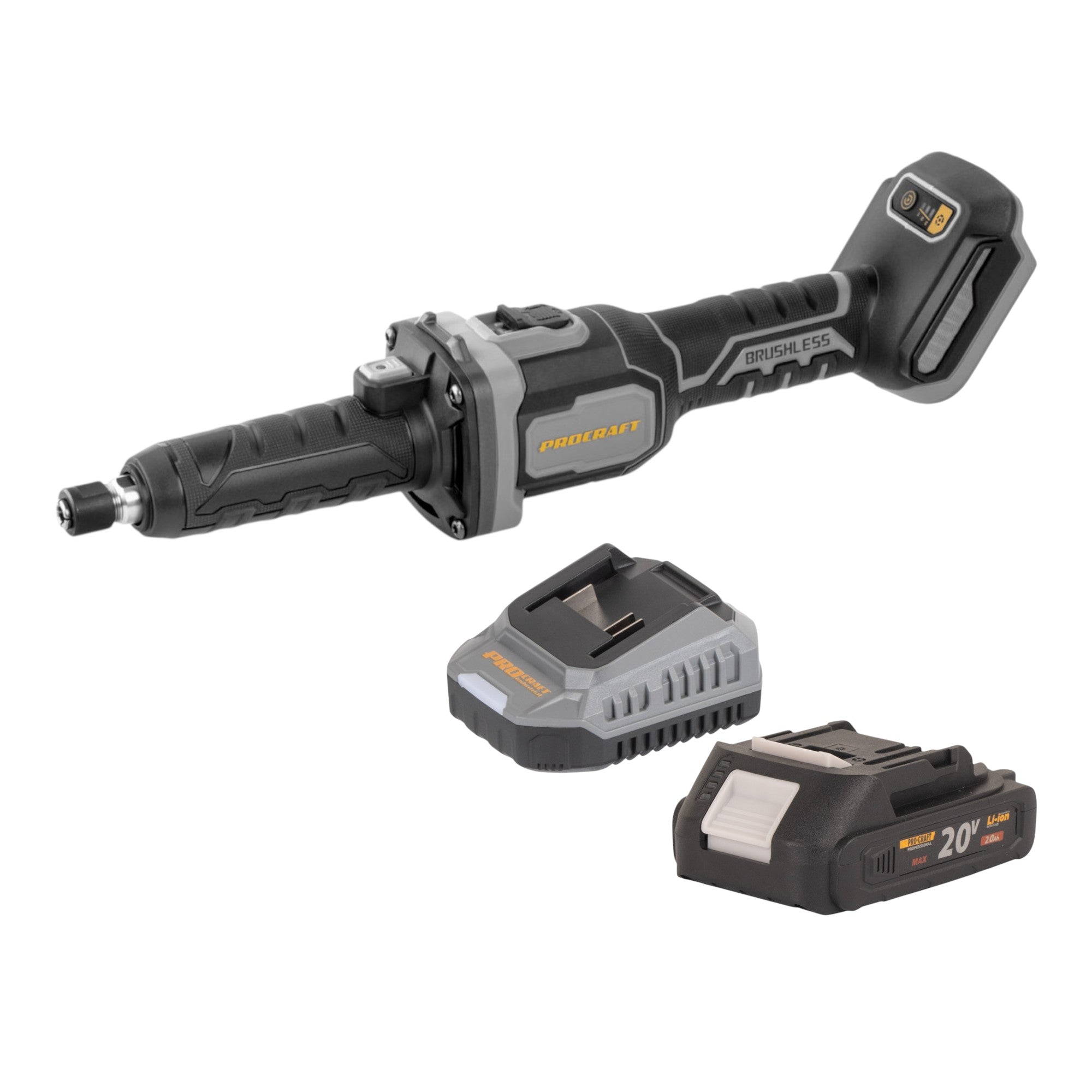 Procraft Industrial DG20A-BB Akku Geradschleifer 20 V 6 mm Brushless + 1x Akku 2,0 Ah + Ladegerät
