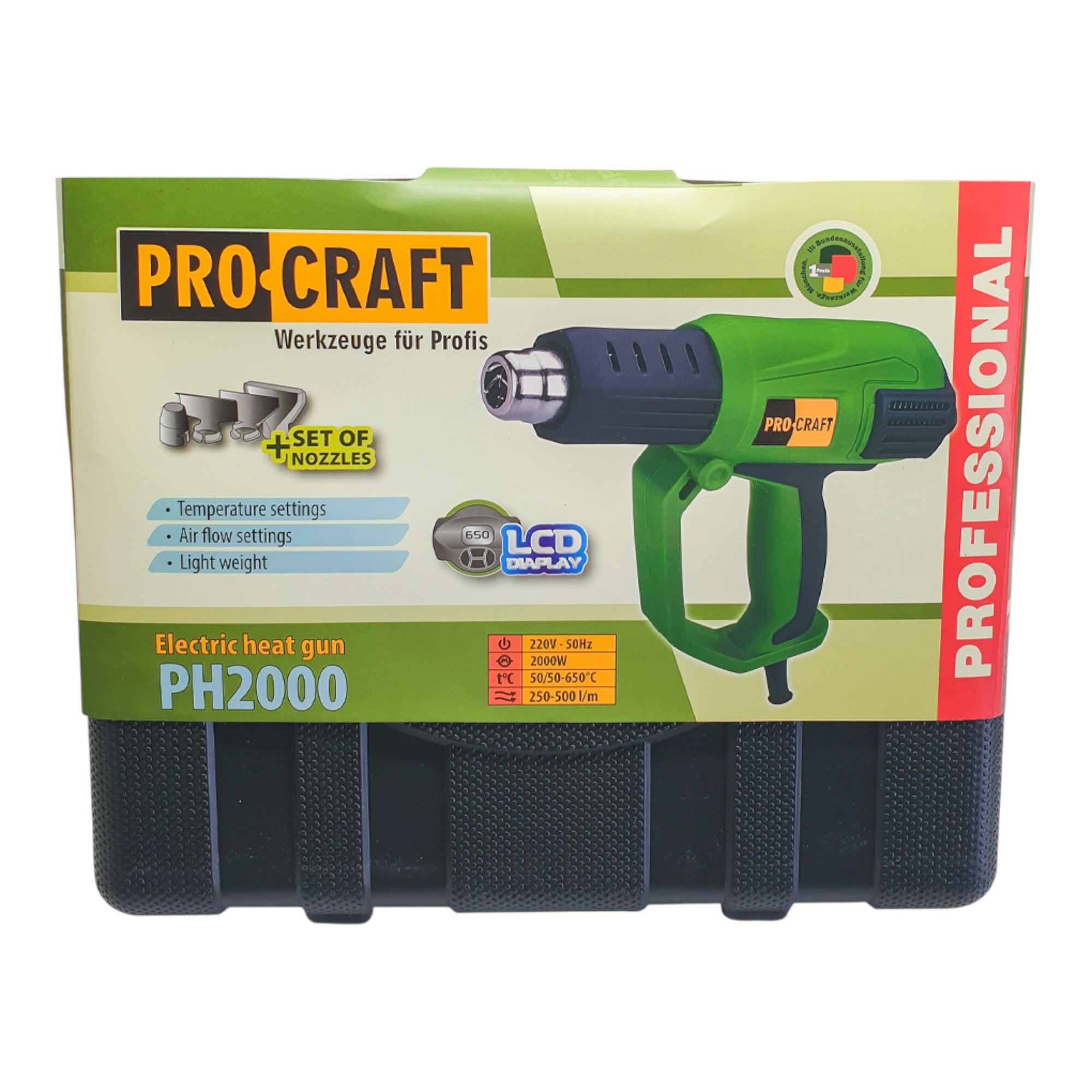 Procraft PH2000 hot air gun 2000 W 50 - 600 °C + 4x nozzle + case