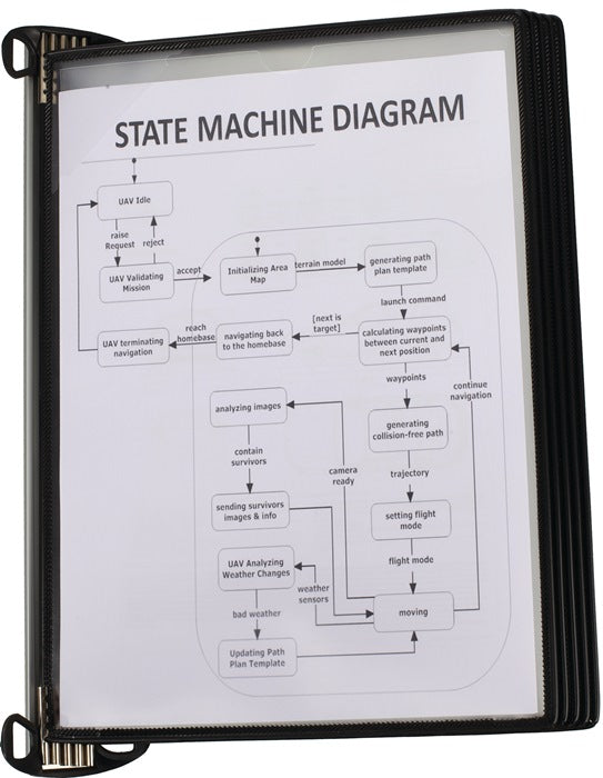 Komplett-Set · mit Aluminiumschiene · mit T-Clip zur Befestigung (ohne Werkzeug) der Aluminiumschiene an allen Aluprofilen mit 8er oder 10er Nut · Befestigung mit Schrauben (nicht im Lieferumfang enthalten) oder Magnetband · schnell einsatzbereit durch Neodym-Magnete, für ein schnelles austauschen der Tafeln · Sichttafeln PP mit kunststoffummanteltem Stahldraht · starke Metalldrehzapfen · mit Easy-Load Öffnungssystem, die fordere Folie wird unter einen Eckverschluss geschoben · für eine Aufnahme von bis zu 20 Blätter · mit 5 Sichttafeln bzw. 10 Sichttafeln schwarz