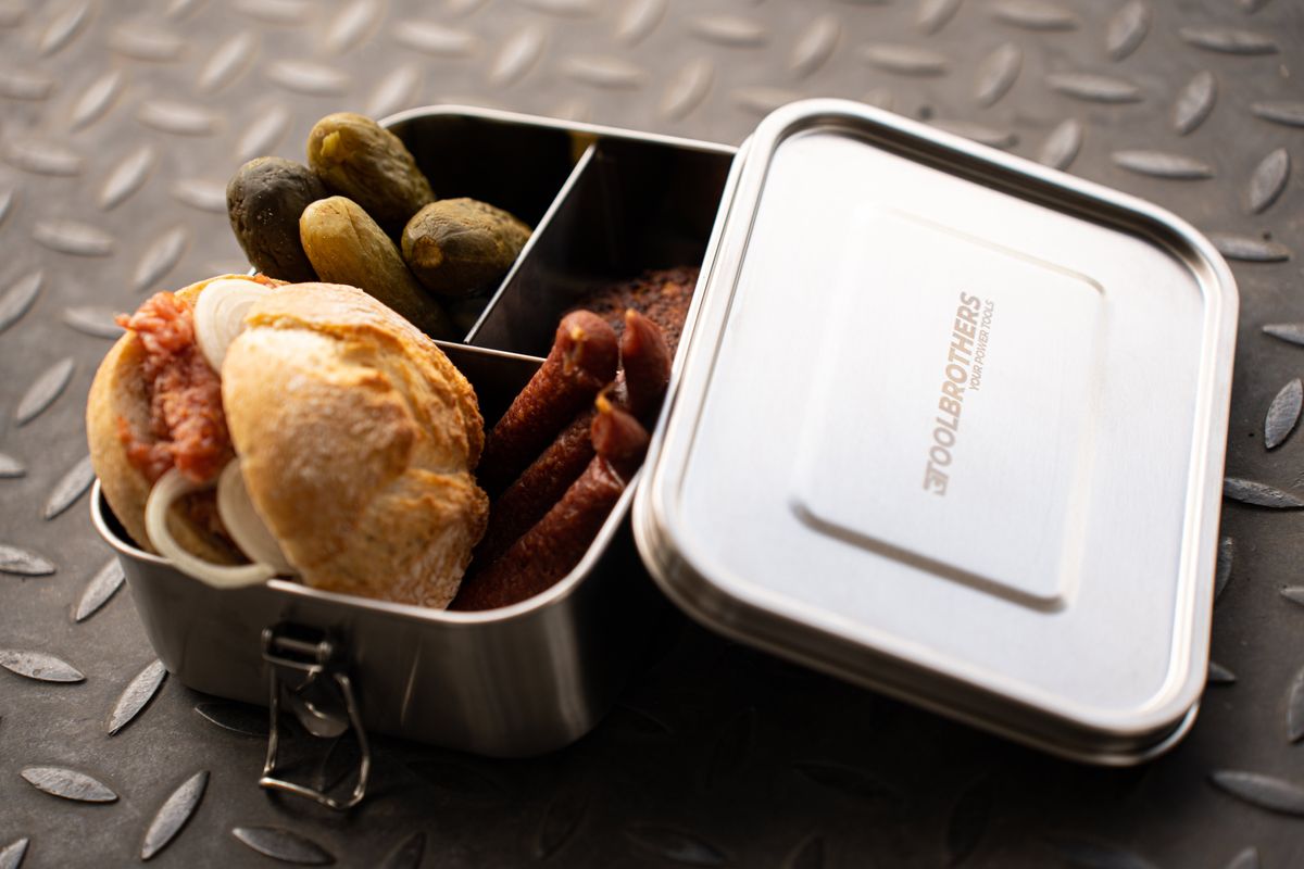 - 1x Toolbrothers Fan stainless steel lunch box with 2 shelves and stainless steel lid 1340 ml