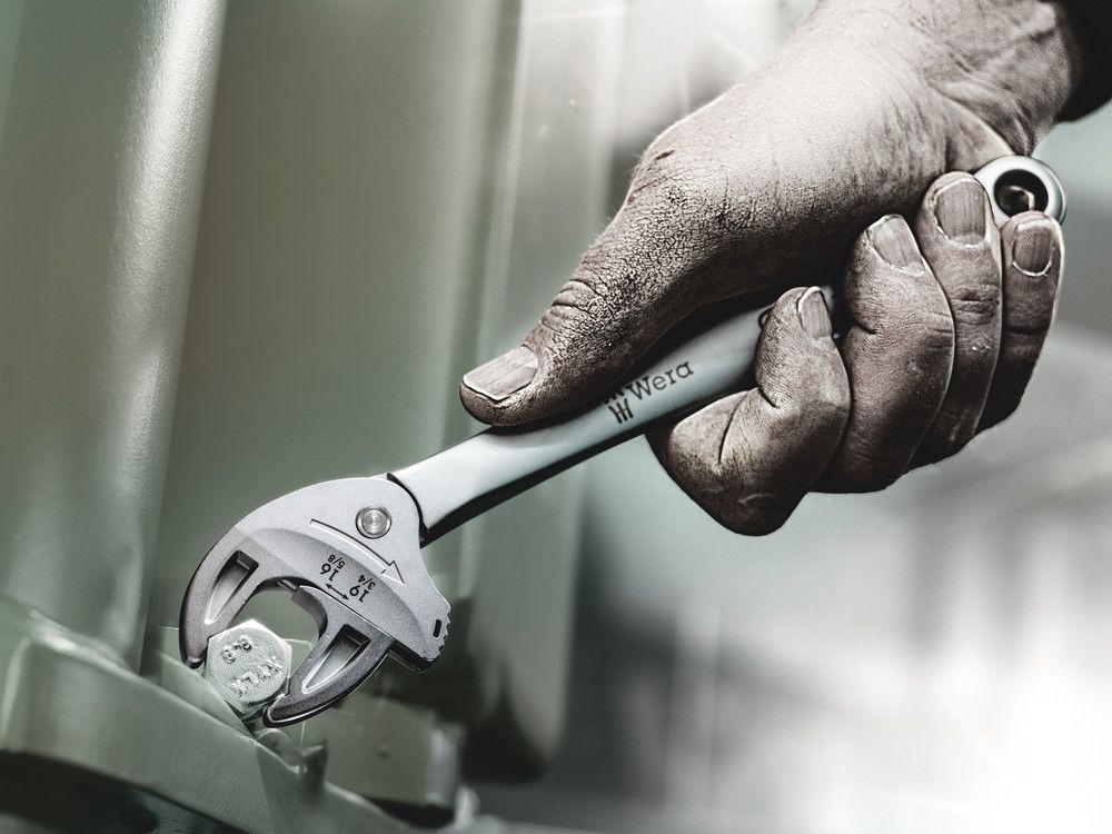 adjustable - self-adjusting - gripping - ratcheting Special product benefits: automatically infinitely variable gripping - gentle on screws (smooth jaws) - ratchet function (continuous screwing without settling) - small swivelling angle of only 30°