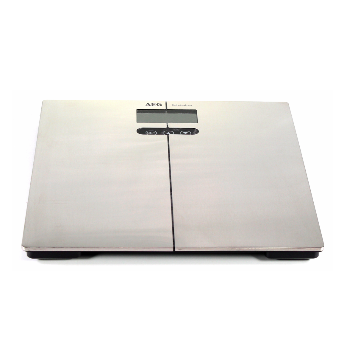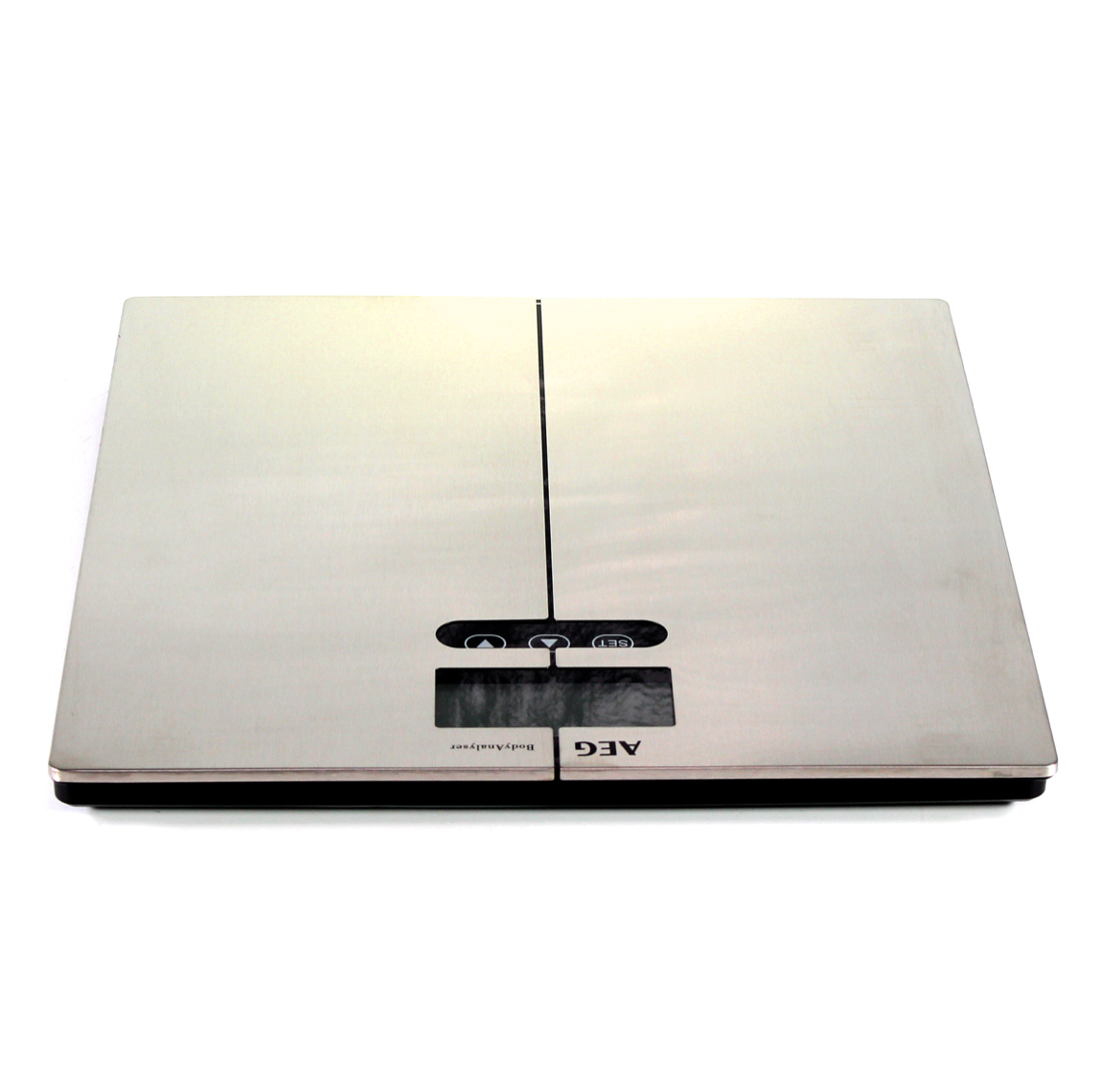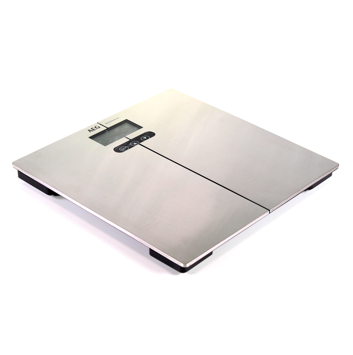 La báscula personal AEG PW 5661 FA está fabricada en acero inoxidable electrónico y sirve para analizar peso, porcentaje de grasa corporal, porcentaje de agua, masa muscular y masa ósea.