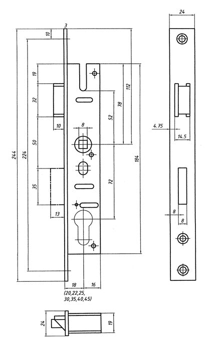 Bever cerradura de embutir de marco tubular ( 3322099051 ) PZW 24/30/72/8 mm DIN izquierda / derecha cerradura de embutir tiro 11 mm 244 mm