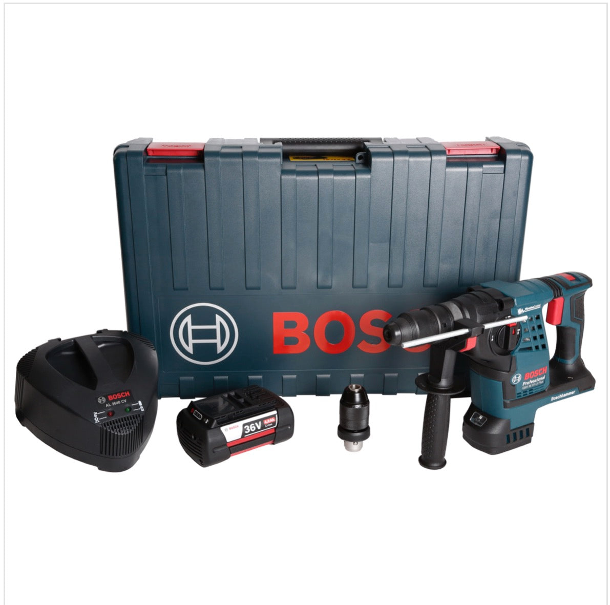 Taladro percutor inalámbrico Bosch GBH 36 VF-LI Plus 36 V SDS Plus en maletín profesional con portabrocas intercambiable, 1 batería GBA de 4,0 Ah y cargador