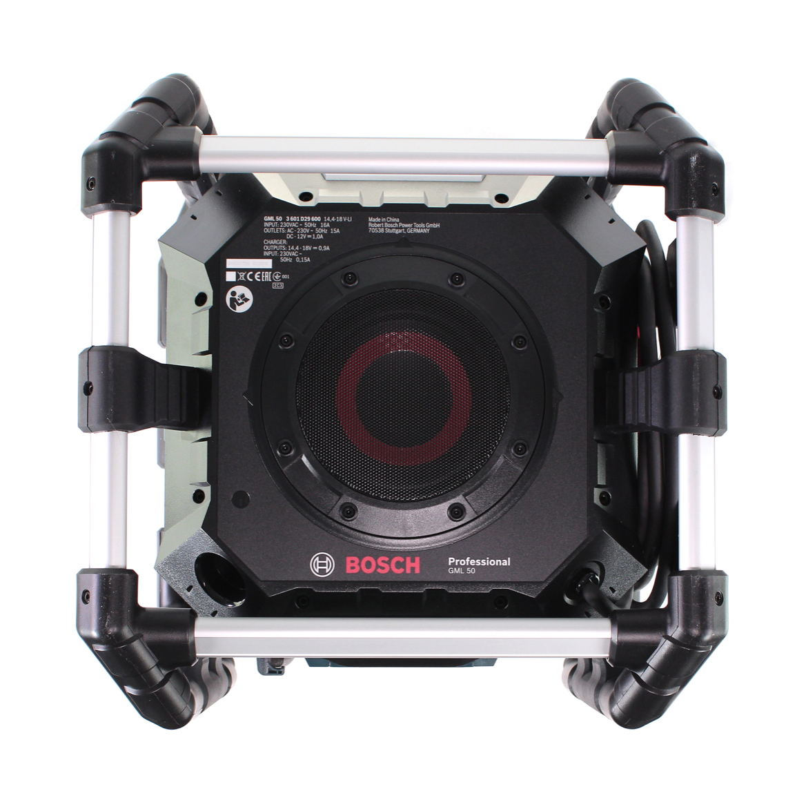 Bosch GML 50 cargador de radio de batería radio de obra 18V 50W IP54 + 2x baterías 2.0Ah + cargador