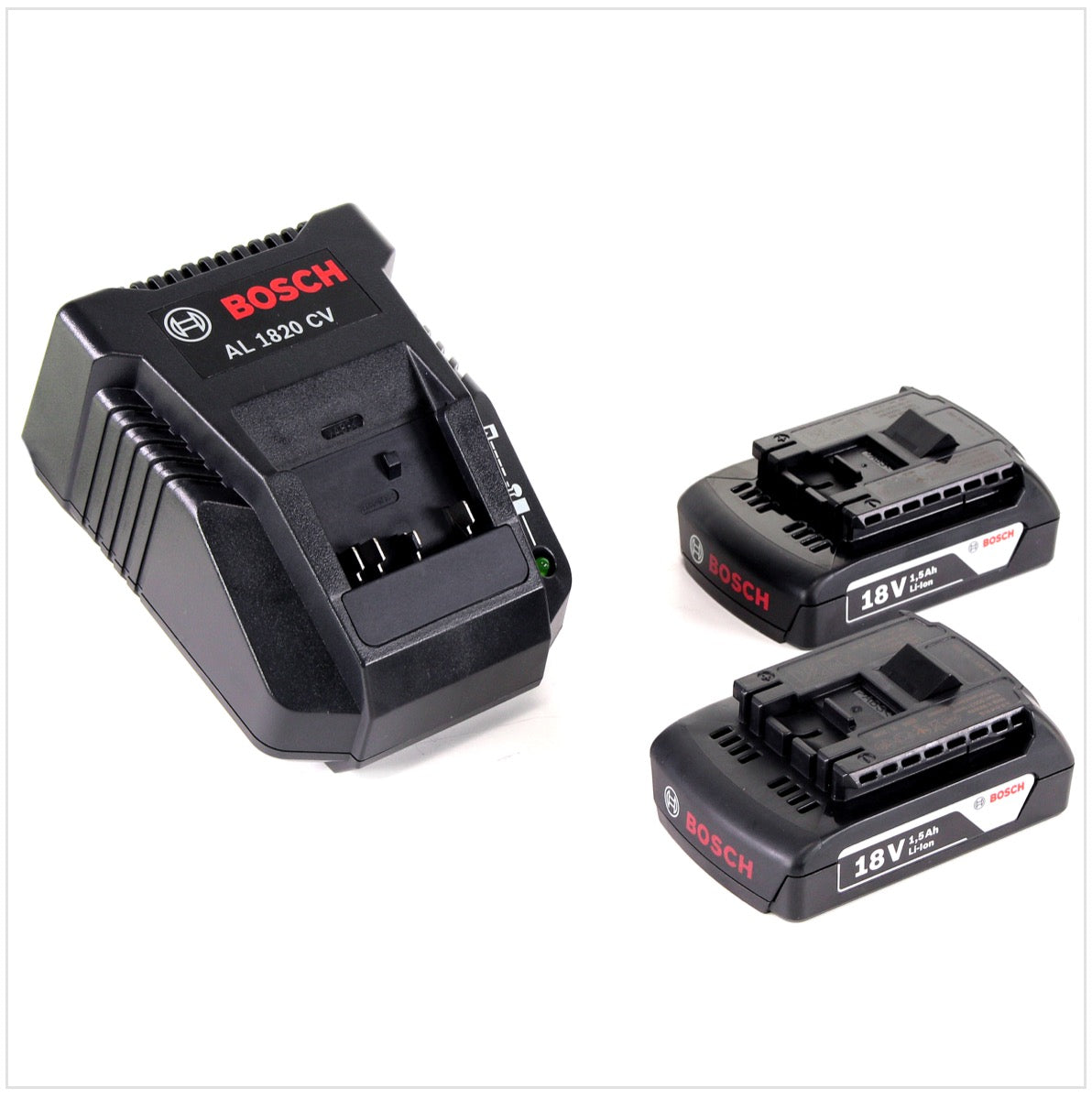 Bosch GSB 18-2-Li Plus Professional Taladro atornillador de percusión a batería 18V + Maletín + 2x Batería GBA 1,5 Ah + Cargador AL 1820 CV + Set de 32 puntas + Juego de 7 brocas