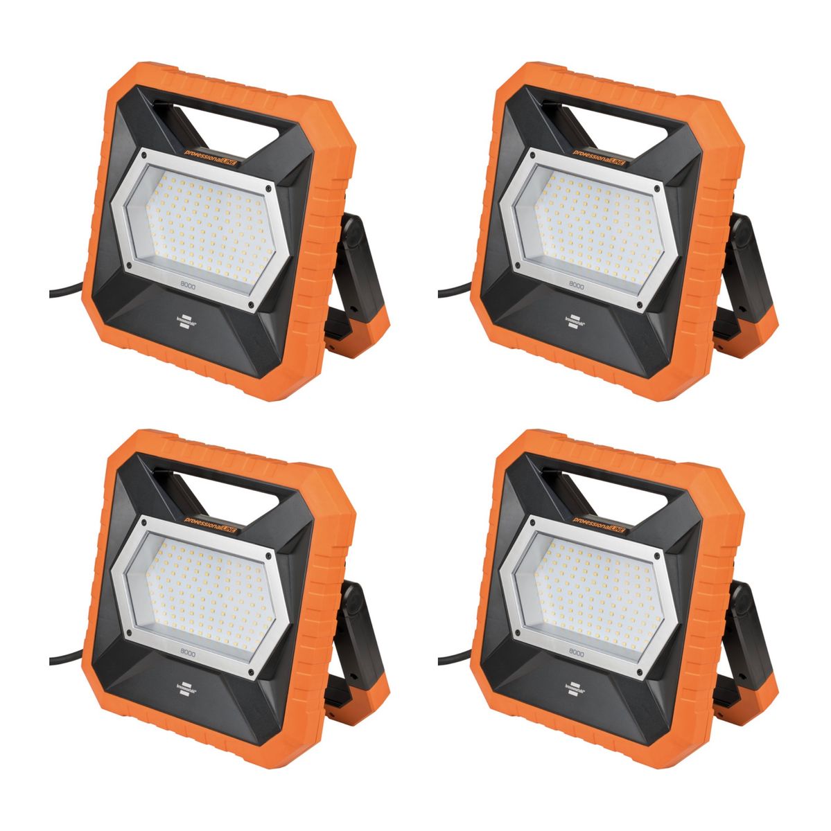 Brennenstuhl professionalLINE Set 4x X 8000 M Foco LED móvil 8300 lúmenes (4x 9171330801) IP54 80 Watt