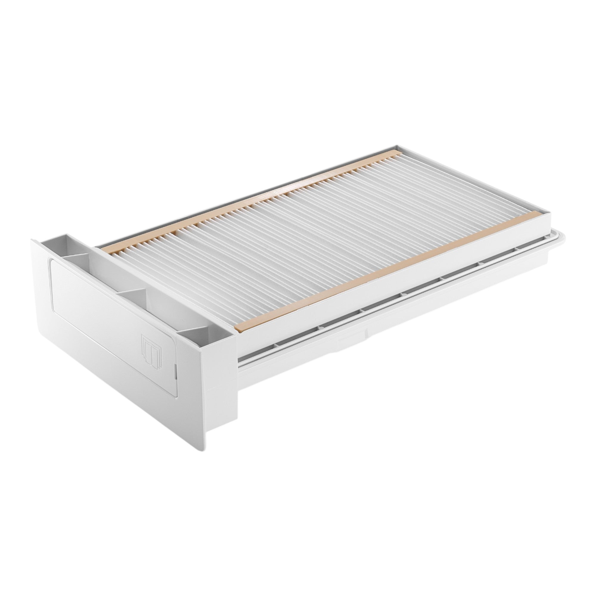 El filtro principal Festool HF-CTH COMP garantiza un trabajo limpio y saludable. Se trata de un filtro plegado plano de alta calidad fabricado en poliéster resistente, desarrollado especialmente para los aspiradores móviles compactos con clase de polvo H/HEPA. Con un grado de separación del 99,995 %, el filtro retiene de forma fiable incluso el polvo nocivo para la salud y patógeno, incluidas las partículas cancerígenas y el polvo contaminado con bacterias, gérmenes u moho. De este modo, cumple los estrictos requisitos de la clase de polvo H y también es adecuado para aplicaciones especialmente críticas, como la eliminación de moho o amianto. Gracias a su durabilidad y eficiencia, el filtro principal contribuye de manera decisiva a la mejor aspiración de polvo posible y ayuda a los usuarios a trabajar de forma limpia y segura en todo momento con el sistema.