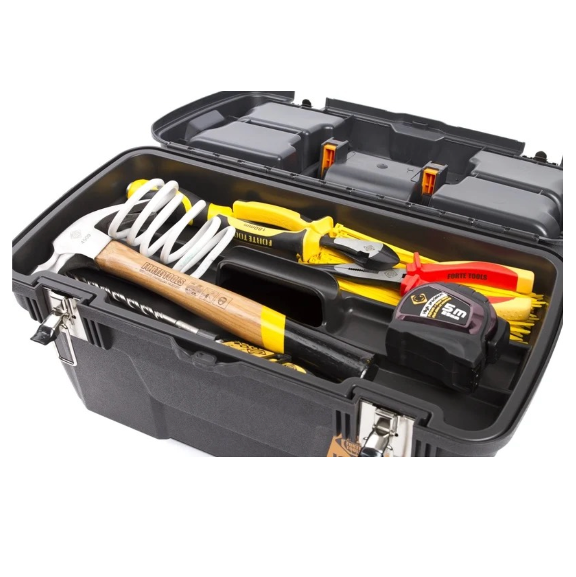 FORTE Tools MG-22 Caja de Herramientas Jumbo en 58x23x31 cm, Maletín de herramientas con pestañas metálicas y organizador interno, extraíble, con cerradura ( 000051144585 )