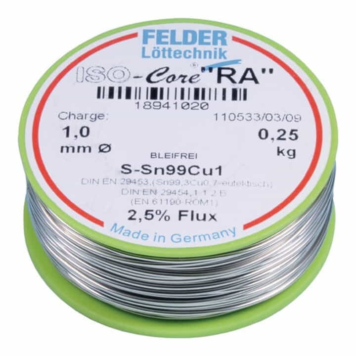 sin plomo - para altas exigencias al soldar con aleaciones sin plomo - para todos los trabajos de soldadura en electrotecnia - fundente según DIN EN 29454-1 1.1.2.B - punto de fusión 227 °C - contenido estándar de fundente 2,5