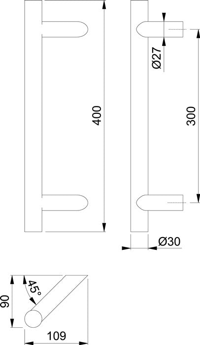 incl. juego de fijación, nº 11 - Fijación: oculta - Soportes: redondos, acodados 45