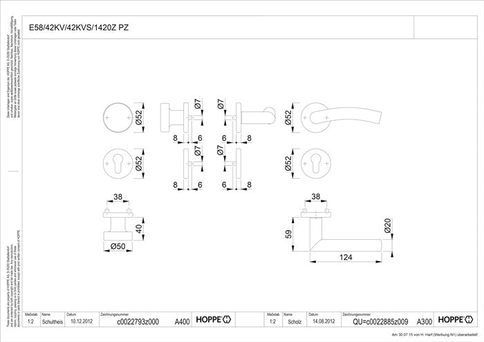 Juego de rosetas con rosetas con llave · homologado según DIN EN 1906: 37-0140A (categoría de uso 3), juego para edificios públicos · Almacenamiento: tiradores de puerta sueltos, resortes de retorno utilizables a derecha/izquierda , cojinetes deslizantes sin mantenimiento · con conexión de pasador rápido en D/D con pasador macizo HOPPE (parte con orificio/parte con orificio), en K/D con pasador macizo HOPPE FDW (parte con orificio) · subestructura: plástico, levas de soporte · Fijación: oculta, continua, reversible, tornillos multiuso ATENCIÓN: en juegos reversibles, ¡tenga en cuenta la derecha o la izquierda según DIN!