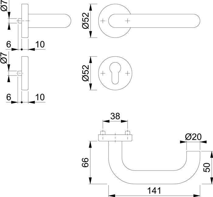 Juego de manillería de roseta con bocallaves para puertas interiores - comprobado según DIN EN 1906: 47-0150A y PIVCERT Plus (1.000.000 de ciclos de prueba), juego de contrato (categoría de uso clase 4) - Soporte: manillas fijas/rotables (juego de manillería: pomo exterior fijo), muelles de retorno, conexión de manilla a presión HOPPE con cierre de bola Sertos®, cojinetes de deslizamiento libres de mantenimiento - Conexión: perno de perfil completo HOPPE (manilla grt.) / perno de perfil completo HOPPE FDW (manilla grt.), templado - Subestructura: escudos de acero, escudos de llave de plástico, levas de apoyo - Fijación: oculta, continua - tornillos de escudo roscados M5 - escudos de llave multiuso, alternantes - TS 40 - 45 mm