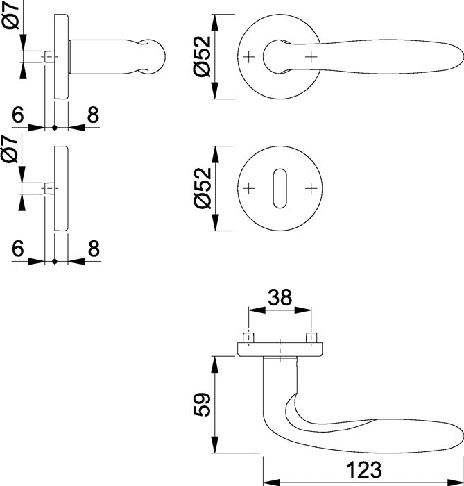 Juego de manillería con roseta HOPPE de acero inoxidable con escudos de llave para puertas interiores: comprobado según DIN EN 1906: 37-0140A - juego de contrato Rodamiento: manillas sueltas - muelles de retorno utilizables a derecha/izquierda - cojinetes lisos sin mantenimiento Conexión: Pasador rápido HOPPE con pasador completo HOPPE (pieza pasador/agujero) Subestructura: Plástico - levas de apoyo Fijación: oculta - continua - alterna - tornillos multiusos