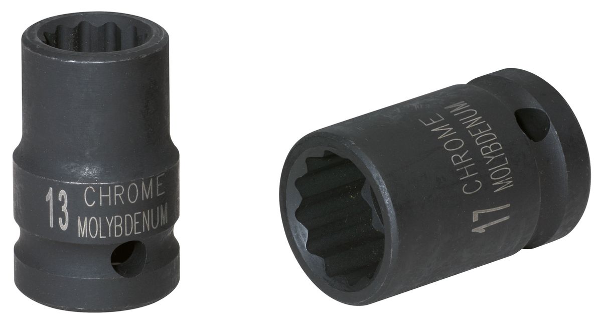 3/8' Llave de vaso de impacto, dodecaedra, entrecaras, 6mm - Llave de vaso de impacto de 12 cantos, corta