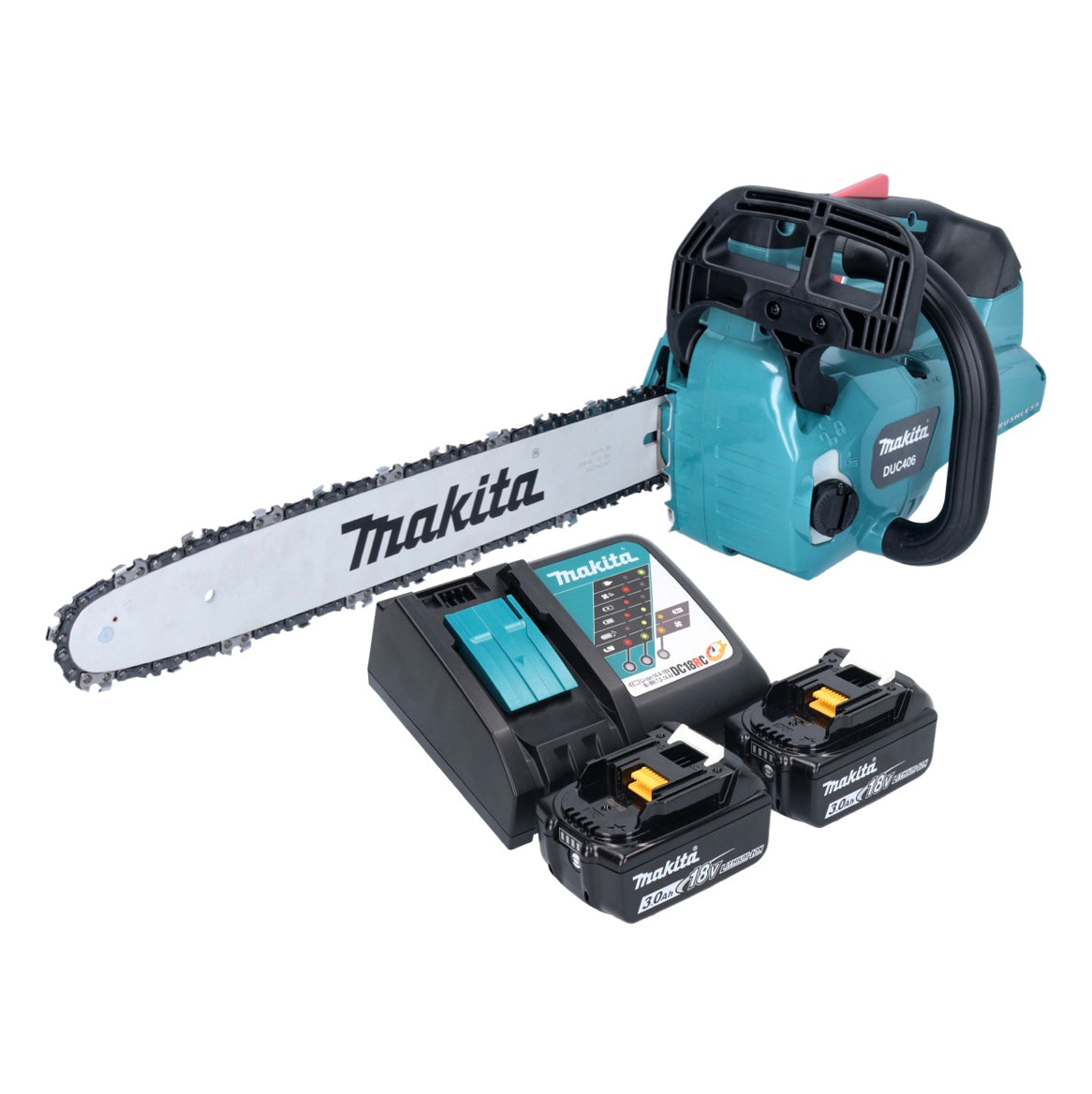 Motosierra a batería Makita DUC 406 RFB 36 V (2x 18 V) 40 cm sin escobillas + 2x batería 3,0 Ah + cargador