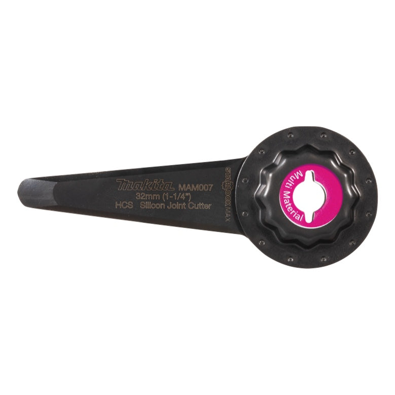 El cortador de juntas universal MAM007 es adecuado para quitar juntas de silicona y cortar materiales blandos gracias a su filo estable y delgado. El soporte Starlock Max garantiza la máxima transmisión de potencia y un cómodo cambio de cuchilla en pocos segundos y se puede utilizar con muchas máquinas gracias al sistema de soporte independiente del fabricante. Makita es uno de los principales fabricantes mundiales de herramientas diversas, que se caracteriza sobre todo por su alta calidad de fabricación y su enorme sistema de baterías de 18 voltios, con más de 360 ​​máquinas compatibles.