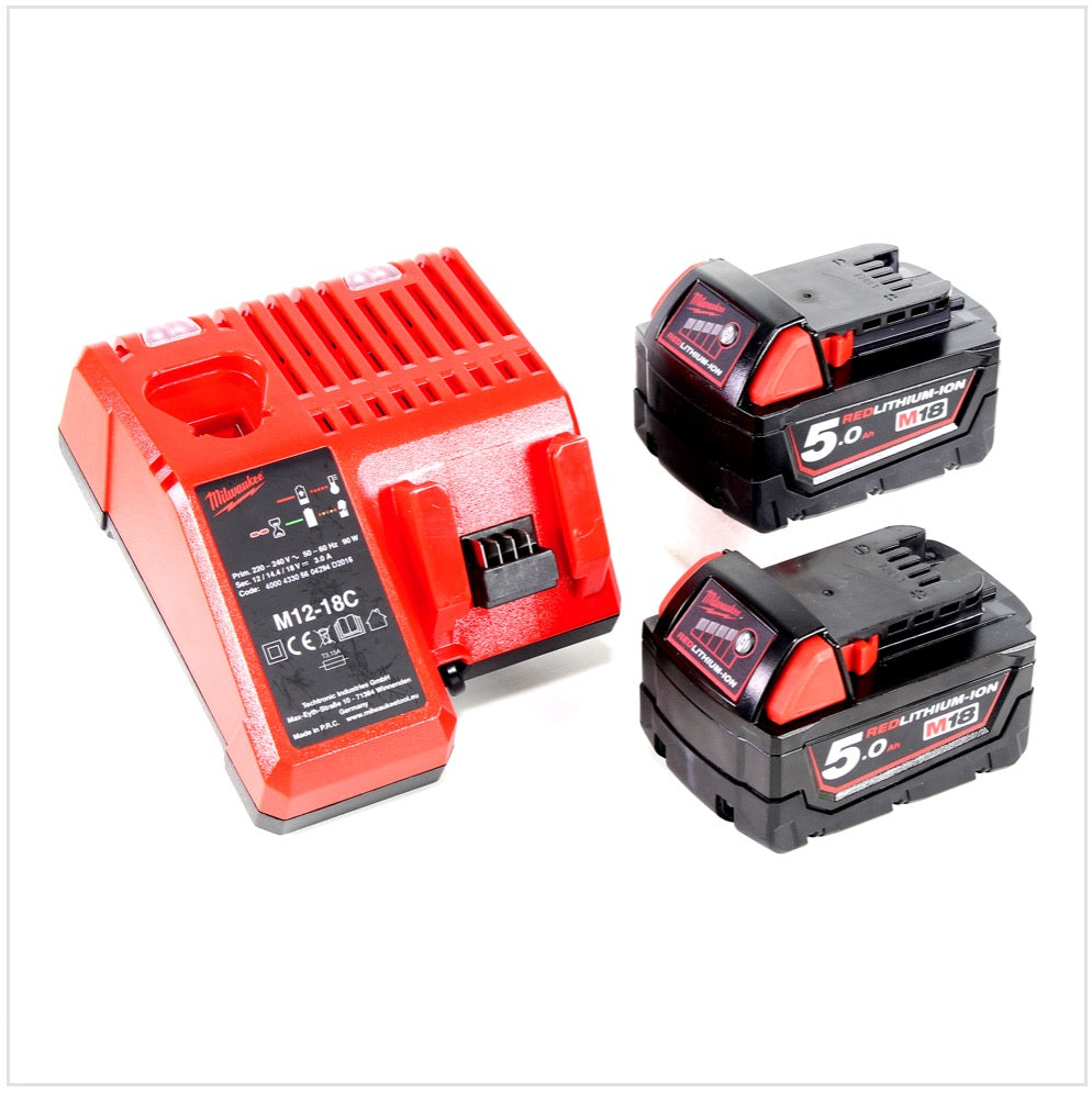 Herramienta multifunción Milwaukee M18 BMT - 502 batería 18 V en caja Stanley + 2x batería M18 B5 5.0 Ah + cargador M12-18C
