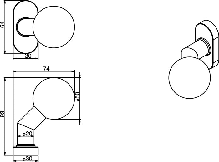 para puertas perfiladas - acodado, fijado sobre roseta - fijo - con fijación invisible - fijación M6 - suministrado sin pasador ni tornillos