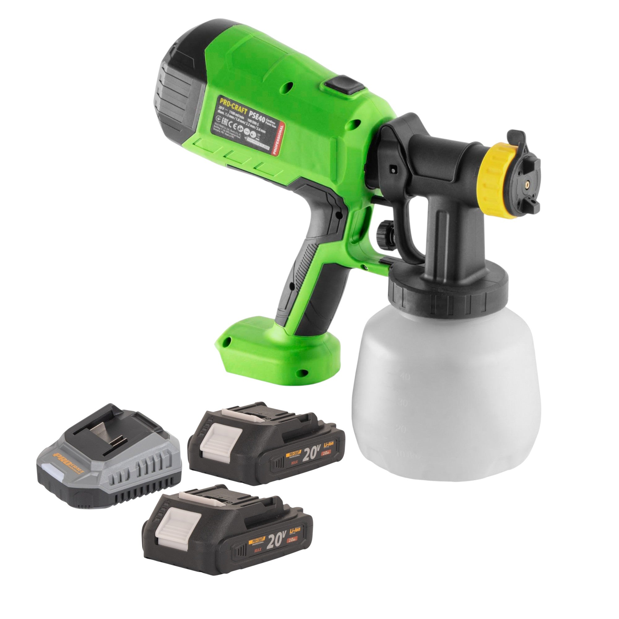 Procraft PSE40bb Akku Farbspritzpistole 20 V + 2x Akku 2,0 Ah + Ladegerät