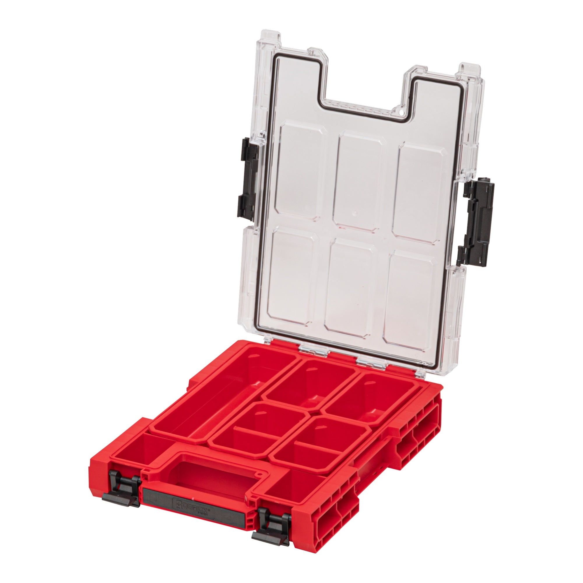 RED ULTRA HD es una edición especial de los productos Qbrick System ONE fabricados con plástico ultrarresistente, que se caracteriza por una excepcional resistencia a los daños mecánicos. Las pruebas de impacto realizadas confirman su excepcional durabilidad, incluso en condiciones por debajo de 0 °C. Qbrick System ONE Organizer M es el modelo más pequeño de la gama de organizadores modulares ONE, que pueden combinarse en numerosas configuraciones. Organizer M incorpora el sistema patentado Easy Access System que, gracias a unos conectores especiales, permite acceder fácilmente a cada módulo sin necesidad de desconectarlos, lo que aumenta significativamente la ergonomía de trabajo. De serie, el Organizador M está equipado con 5 cubos para accesorios más pequeños, 4 de ellos más pequeños y uno largo para almacenar y transportar elementos longitudinales de su taller. Además, el contenido del organizador está protegido contra la entrada de agua y polvo mediante una junta flexible instalada en la cubierta de policarbonato.