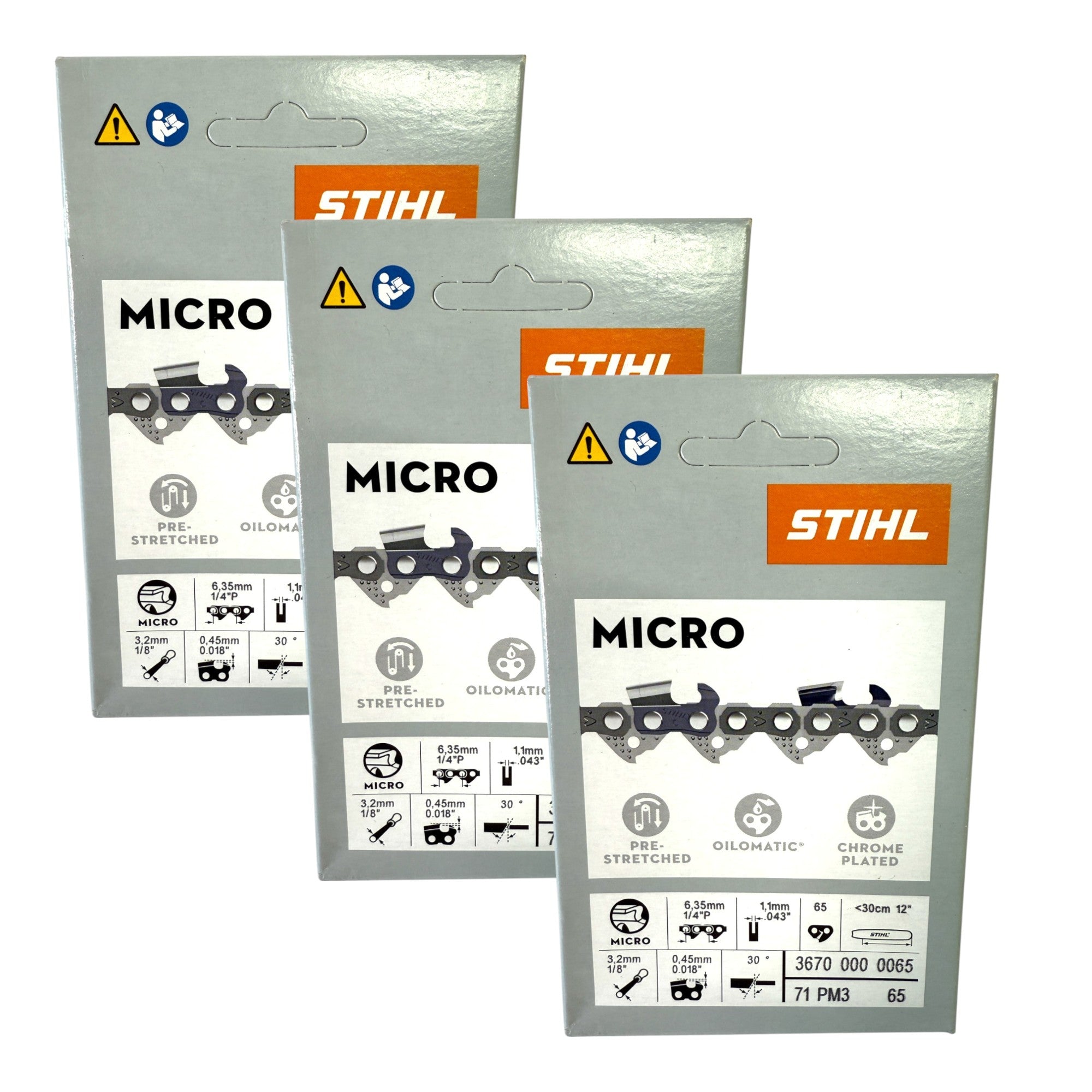 Stihl 3x 1/4" Picco Micro 3 (PM3) cadena de sierra 30 cm 1/4" P 1.1 mm 65 TG 3 piezas ( 3x 36700000065 )