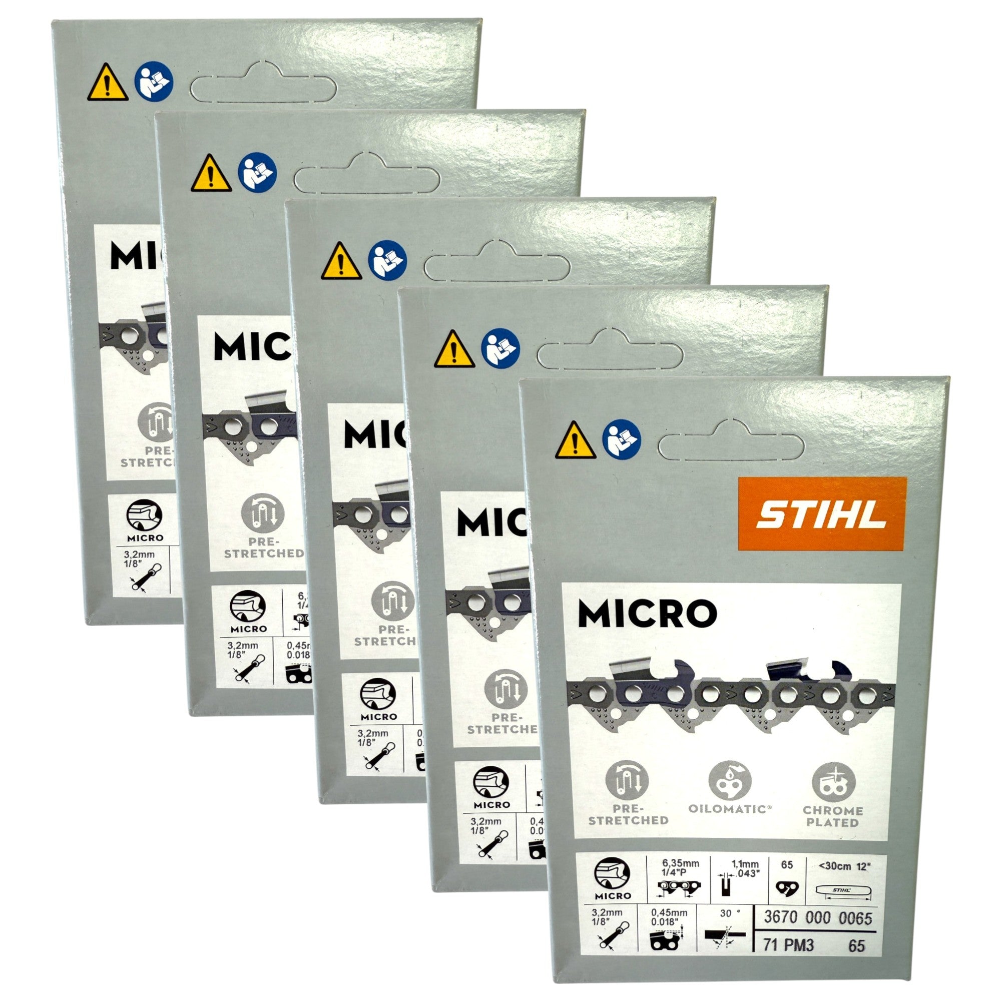 Stihl 5x 1/4" Picco Micro 3 (PM3) cadena de sierra 30 cm 1/4" P 1.1 mm 65 TG 5 piezas ( 5x 36700000065 )