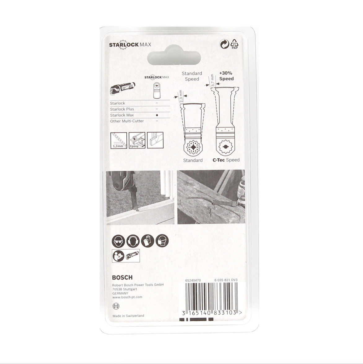 Sa longueur de 80 mm augmente la portée pour les coupes prolongées. La feuille coupe également le bois, le métal non durci, le plastique, les panneaux stratifiés de plastique et les plaques de plâtre. Tous les outils électriques du type Starlock Max sont compatibles avec ce produit.