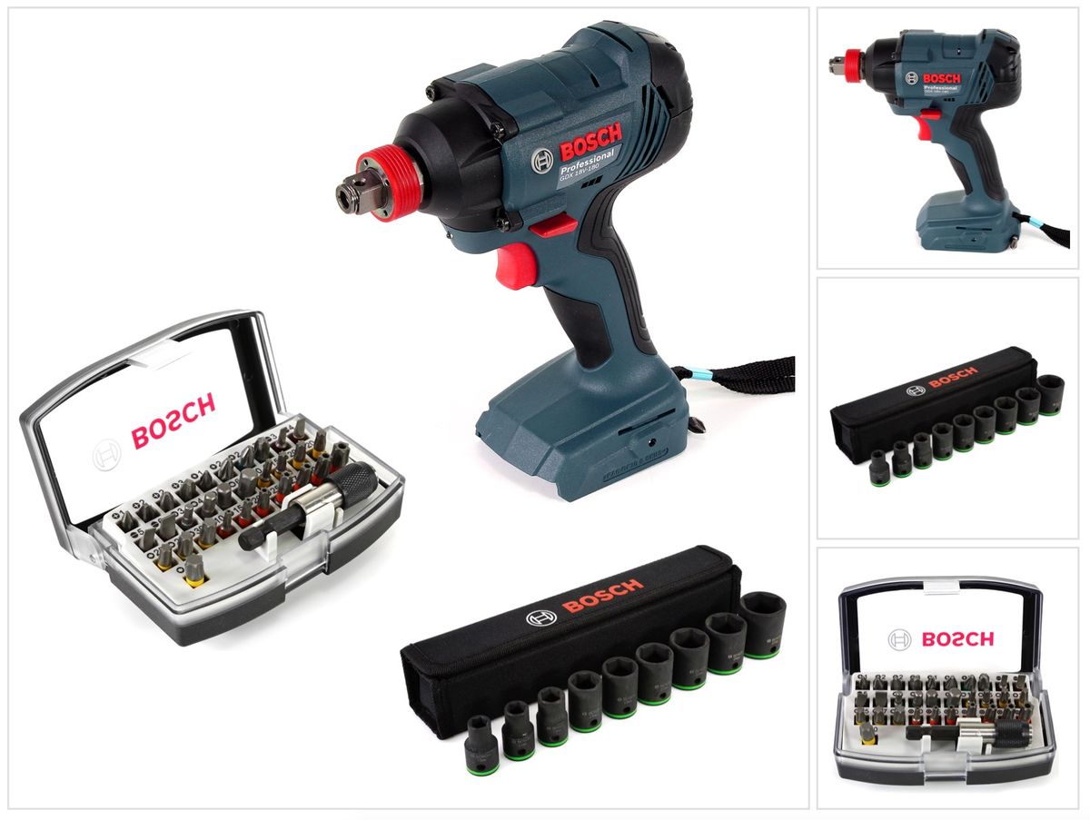 Bosch GDX 18 V-180 Li-Ion Visseuse-boulonneuse à chocs sans fil 180 Nm + 1x Douille hexagonale 1/4", douille carrée 1/2" + Clé à douille + 32 pièces jeux d'embouts - sans Batterie, sans Chargeur