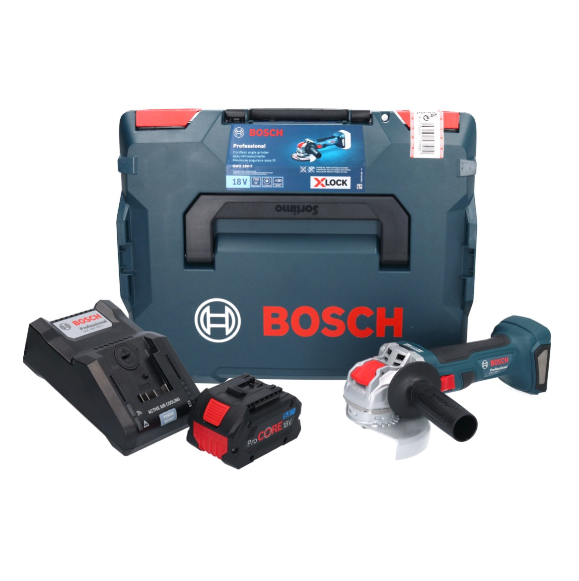 Bosch GWX 18V-7 Professional Akku Winkelschleifer 18 V 125 mm Brushless X-LOCK + 1x ProCORE Akku 5,5 Ah + Ladegerät + L-Boxx