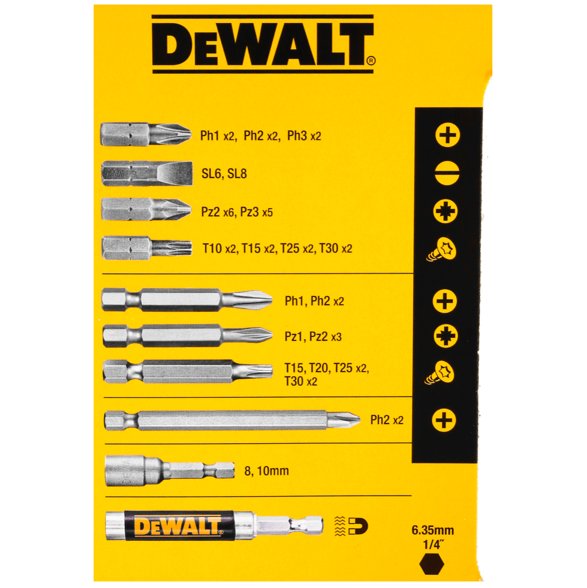 DeWalt DT 71518 Coffret de vissage 45 pièces avec boîte de rangement robuste