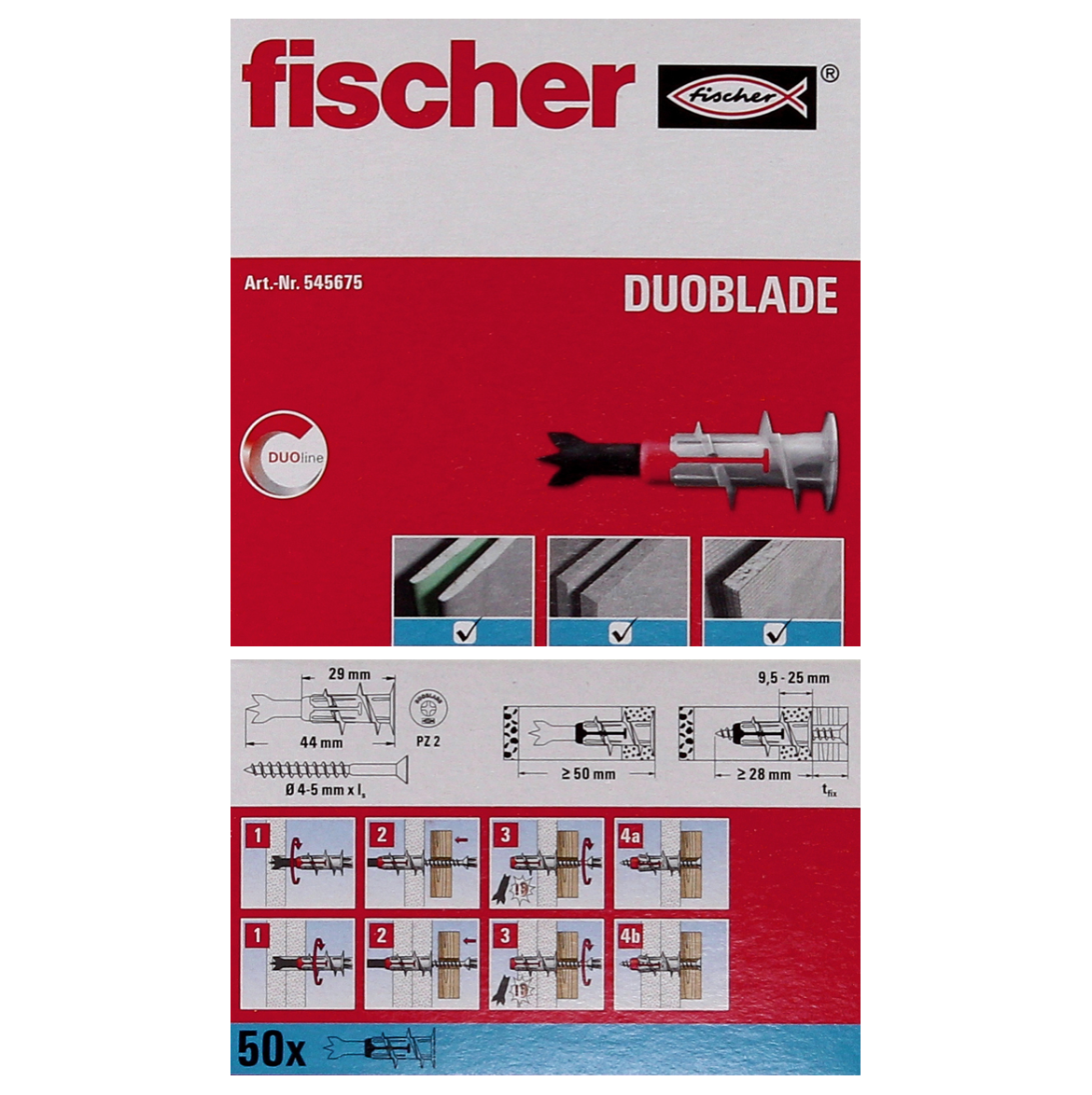 Fischer DUOBLADE Cheville autoforeuse pour plaques de carton plâtre 44mm 250 pcs. (5x 545675)